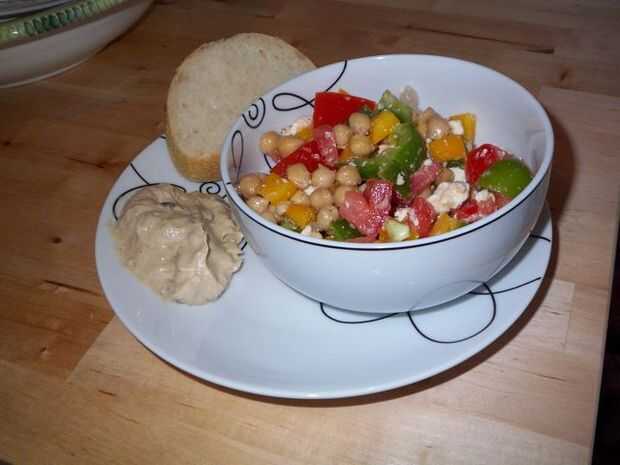 su conseguir caliente hacia fuera, tiempo para una comida fresca de ensalada de guisantes del polluelo.