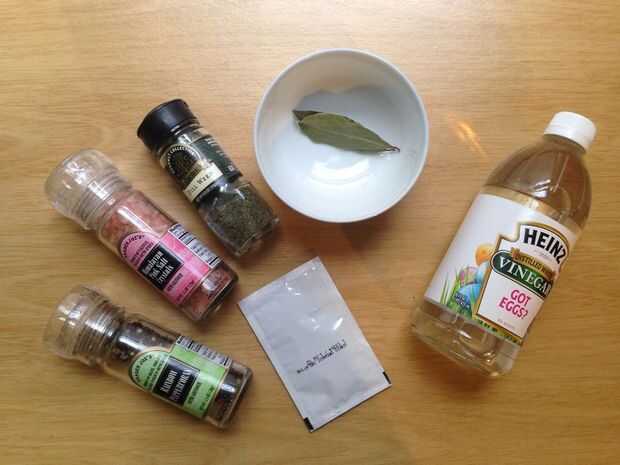 la especia es solo lo que puedo encontrar en la cocina. Me gusta poco de conserva en vinagre sabor tan sólo añadir algunos eneldo seco. maíz de la pimienta. hojas de laurel, vinagre blanco y sal.