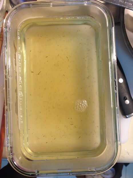 una vez que se enfría la solución. que se sientan en la nevera durante al menos 1 hora, o hasta algunas tiradas en la parte inferior.