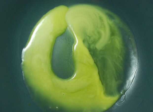 Para hacer una sustancia similar al vestidor, me vierte una fina capa de la gelatina de la yema de huevo en un recipiente y había puesto en la parte superior.