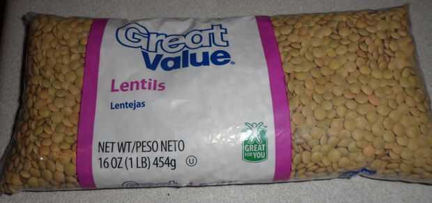 Brotaron Wal-Mart gran valor marca de lentejas. Taladré agujeros en una tapa de plástico azul de cacahuate para un frasco de seguridad para que los niños utilizan para germinar.