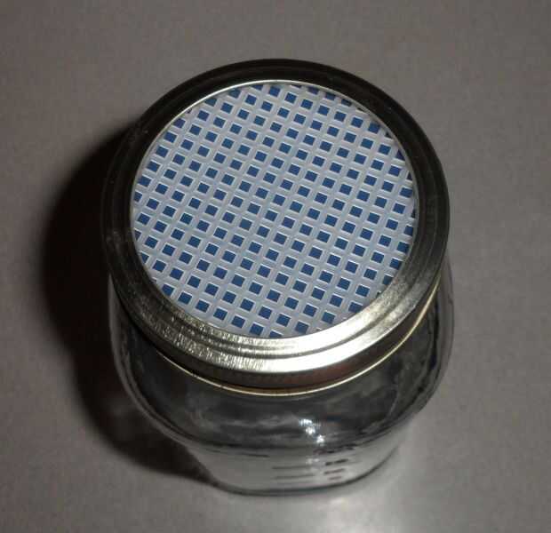 • Frasco cubierto con gasa o tela con agujeros, sujete la tela con una banda de caucho