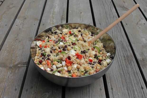 Cocinar la quinua (poner la quinua en una olla con 4 tazas de agua y poner a hervir y luego tapar y cocinar en baja por 15 minutos).