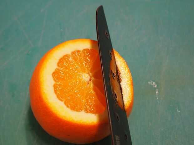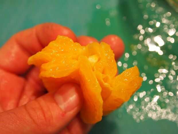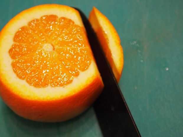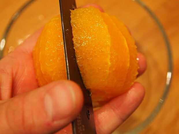 Para cortar en supremes quiere cortar con el cuchillo a lo largo de la membraine hacia el centro, luego repete con el otro lado del segmento.