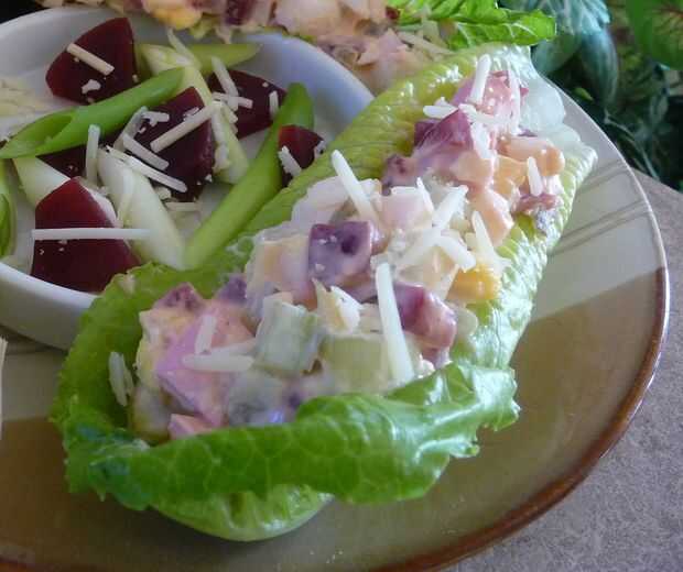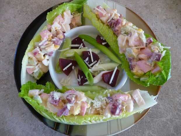 Servir esta ensalada en corazones de lechuga romana, mounded en un tomate fresco o en palitos de apio frescos. (uy... Casi se me olvida sándwiches de ensalada de huevo... pero apuesto que no. ;-)