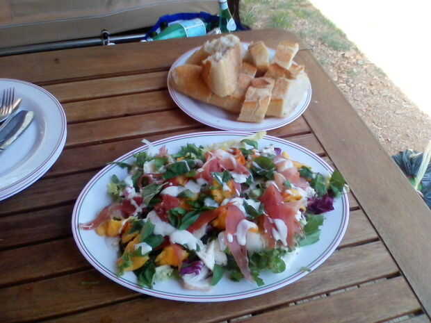 Así que lo que quieres durante el día es algo fácil de preparar, encender el tum y refrescante. A mi esto todo se resume en mi Jamón Serrano y ensalada de melocotón con queso crema mozzorella.