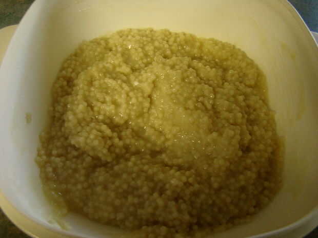 Mezcle bien, cubra con envoltura de plástico y guardar en la nevera por al menos una hora (puede permanecer tanto tiempo como durante la noche).