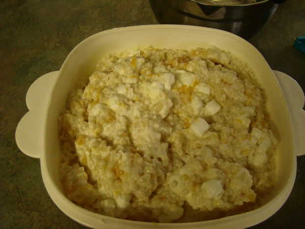 Mezcle la pasta, mandarina, piña, coco, malvaviscos y 2 tazas de batida, todos juntos.  Enfriar durante al menos una hora.
