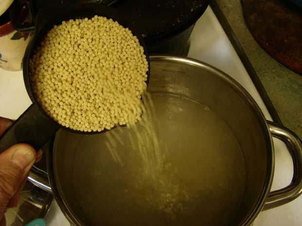 Lentamente Vierta en las tazas de 1 1/3 de pasta.  Dejamos cocer sin cubrir durante 10-12 minutos.  No cocine demasiado.