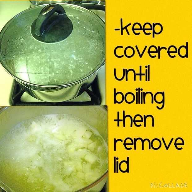 Cubrir la olla para que el agua hierva más rápido, pero quitar la tapa una vez que arranque el hervor para que no desborde.