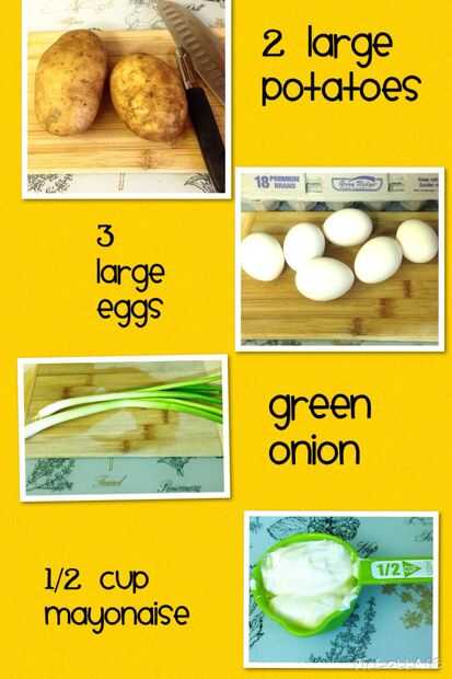 Las cantidades dadas aquí le dará aproximadamente 2 tazas de ensalada, que es en cualquier lugar de 2-8 porciones, dependiendo de cómo hambre todo el mundo es y cómo desea utilizarlo como un lado o como principal vegetariano. En los meses de verano a menudo solo tenemos ensalada de papas para la cena, una ensalada y un par de diferentes tipos de queso. Hace una buena comida en un día caluroso.