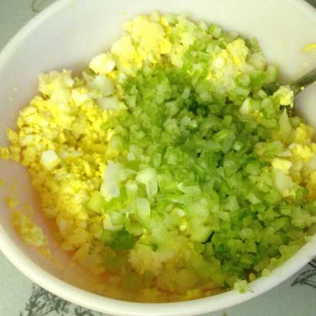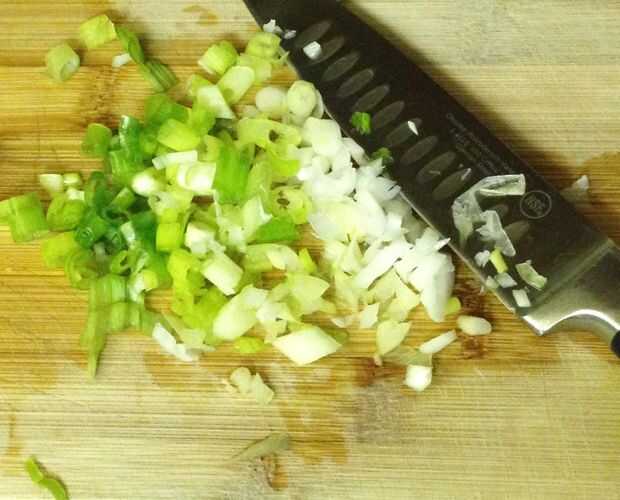 Picar la cebolla y añadirlos, junto con todo lo que te gusta. He añadido algunos apio finamente picado con la mía. Generalmente me gusta un poco de pimienta roja también pero no tengo ninguna.