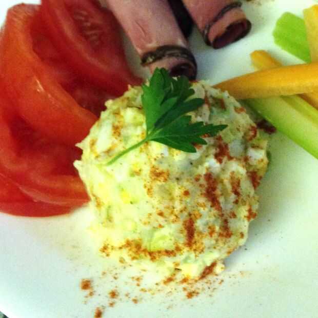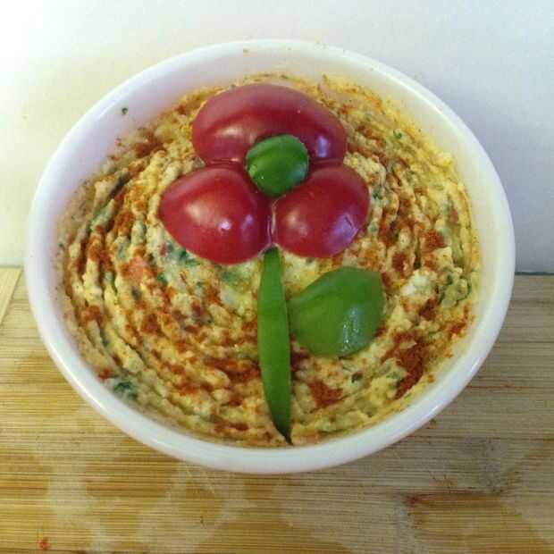 Puede añadir una ramita de perejil para que se vea bonito. También tengo una foto aquí de mi decoración tradicional desde mi niñez, una flor hecha de pimientos. Siempre fue mi trabajo cuando mamá terminado de hacer la ensalada.