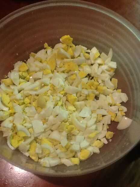 no es bonito mirar, pero esta ensalada deliciosa servido con rebanadas jamón o cualquier cena para esa materia. Es el gruesas verduras que tan buen sabor. También añado aderezo Miracle Whip ensalada, Mayo y mostaza para una gran mezcla de sabor.Paso