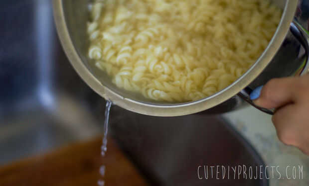MétodoPonga un recipiente grande de agua salada a hervir. Echar la pasta y los dientes de ajo, hervir hasta que estén al dente, escurra y funcionar bajo agua fría para enfriar. Poner el ajo a un lado para utilizar para la preparación. Poner la pasta