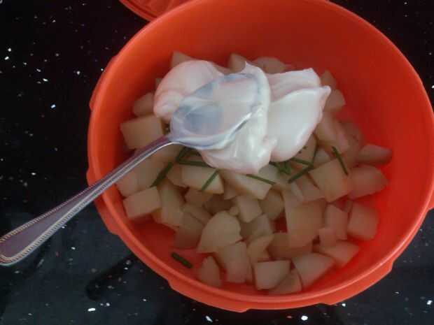 Huevo mayonesa (3 cucharadas de mesa grande por 5 patatas como una guía aproximada)