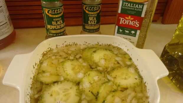 A & auténtico pepino marinado de P Deli Ensalada de (Cuadro; una vez hecha esta ensalada Antipasto otra vez).Authentic... absolutamente, he preparado esta ensalada Antipasto diariamente... y en los meses de verano, hasta 4 veces al día durante mi tur