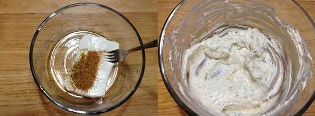 a continuación Mezcle 2 cucharaditas de especias con 1 cucharadita de ralladura de naranja. Asegurándose de que la cáscara es finamente rallado. Mezclar con el queso crema en un tazón pequeño hasta que se incorporen bien.