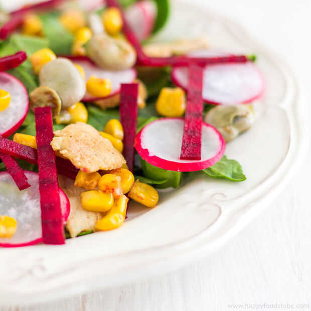Esta ensalada no es sólo una opción perfecta para el almuerzo, pero también es ideal como aperitivo o cena ligera! Lo tiene todo! Colores Vibrant, crocancia, dulzura y en la parte superior está llena de vitaminas, fibra, minerales, antioxidantes y proteínas – golosinas que su cuerpo necesita para mantenerse saludable!