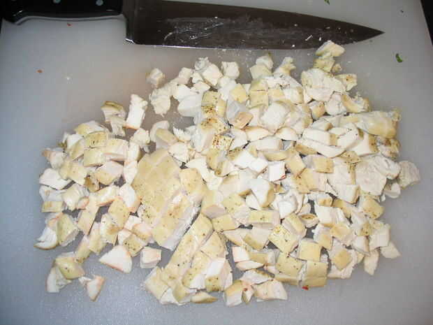 Cuando el pollo esté cocido, picar en trozos pequeños y reservar.