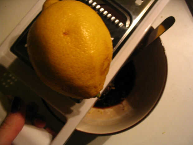 Rallador de la piel de limón y agregar el jugo al líquido. Si usted no posee un rallador sólo añade el zumo de limón.