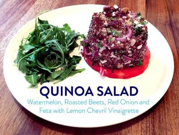 Tengo la idea para esta sandía | Chevril entrada del reto de un delicioso almuerzo en 10 barril Brew Pub en Bend, OR. Había estado en una búsqueda de algo con gran producto añadir sandía fresca y decidido la quinua base con los golpes picantes agradables de limón y queso feta sería una ensalada de verano, además de la quinua, remolacha, nueces y sandía tienen estas texturas interesantes juntos.