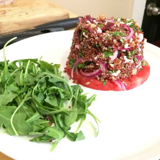 Ensalada de quinua con sandía y vinagreta de limón Chevril (8 / 8 paso)