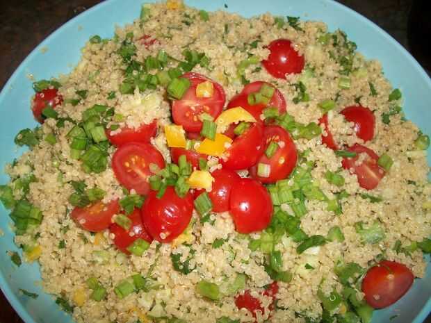 Esta ensalada es tan buena (es mejor si lo dejas sentarse para desarrollar sabores) y bueno (quinua, jengibre, cebolla y ajo son superfoods), que puede volver segundos con una conciencia limpia - y créeme, va!