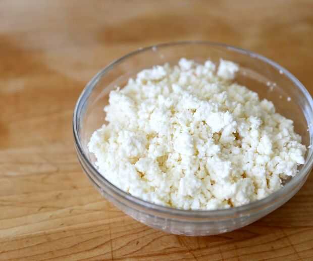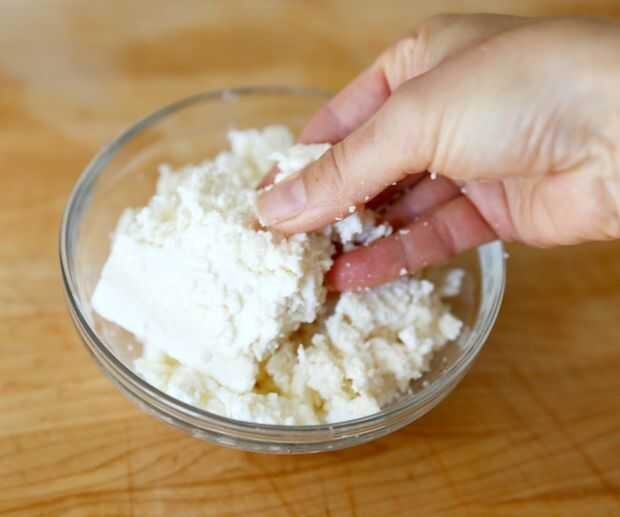 4. con los dedos, se desmoronan 4 onzas de queso fresco en trozos pequeños.