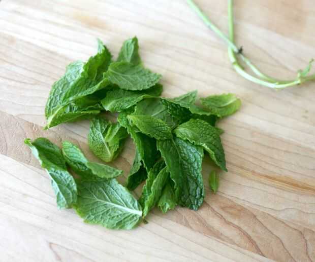 1. quitar un puñado de hojas de menta (1/4 de taza cuando picado) de sus tallos y usando un cuchillo de chef, picar finamente. Ponga a un lado.