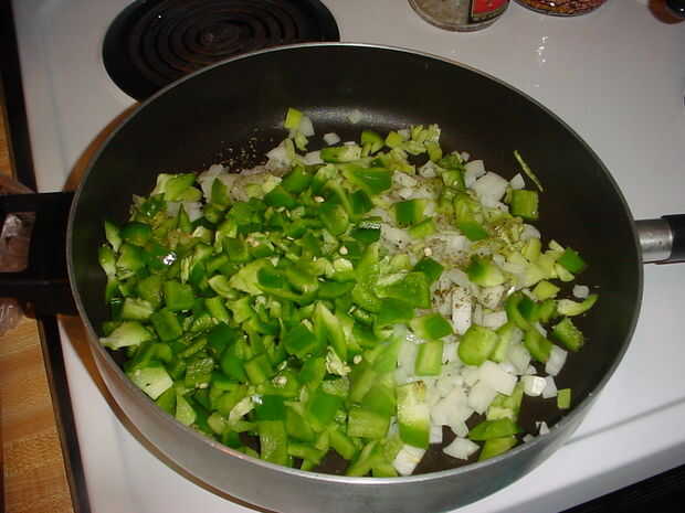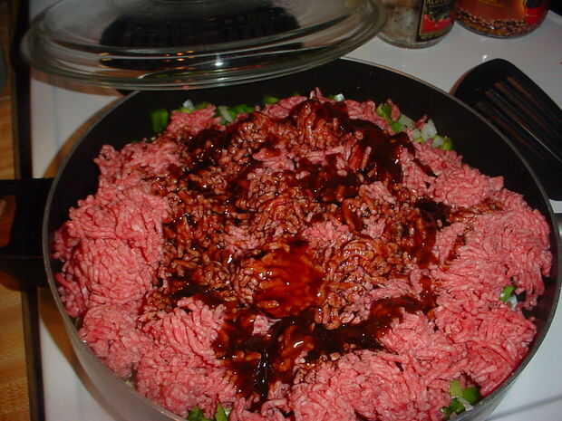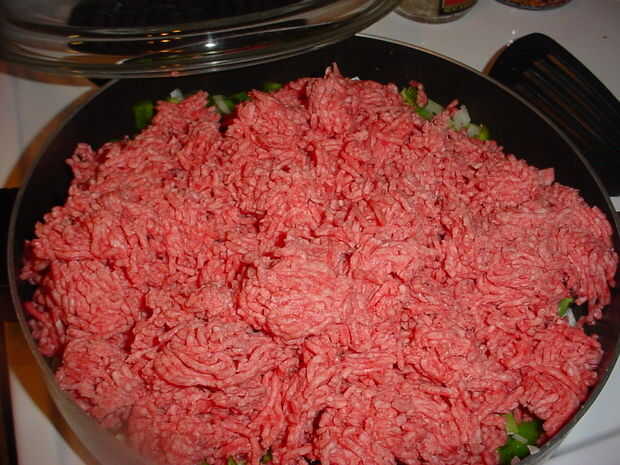 Utilizar una sartén grande, cortar los pimientos y la cebolla y dejarlos cocer durante un par de minutos hasta que estén tiernos, agregar la carne molida, bistec y worceshire salsas y agitar, cubrir y dejar ligeramente marrón