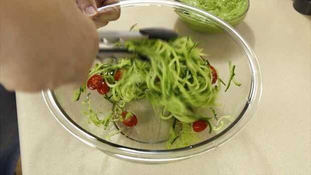 Ensalada de tallarines de pepino con aderezo diosa verde suroeste (6 / 7 paso)