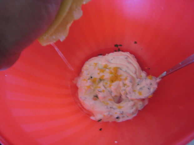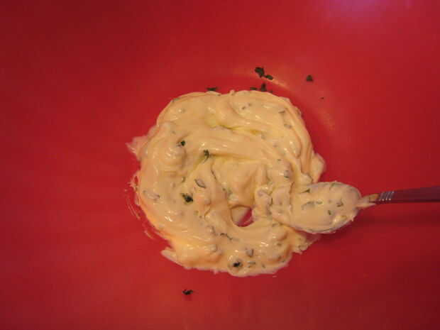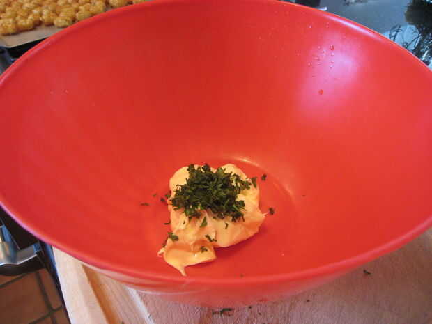 2. cortar aproximadamente una cucharada de perejil y mezclar en mayonesa.