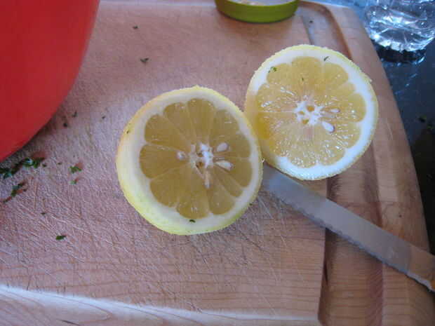 4. cortar el limón por la mitad y después de limpiar hacia fuera la escasez de semillas el jugo de limón a la mezcla.