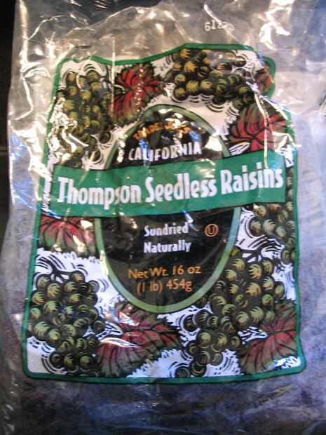 Agregar aproximadamente una taza de uvas pasas. Pasas doradas también están bien, pero no ofrecen tanto contraste. (O como mucho como los escarabajos). Pasas de Corinto sin duda parecen escarabajos.