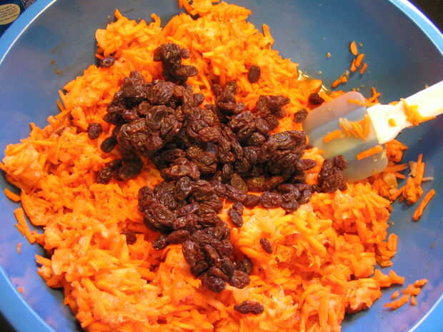 Revuelva alrededor para asegurarse de que la relación de zanahoria con pasas de uva trabaja para usted.