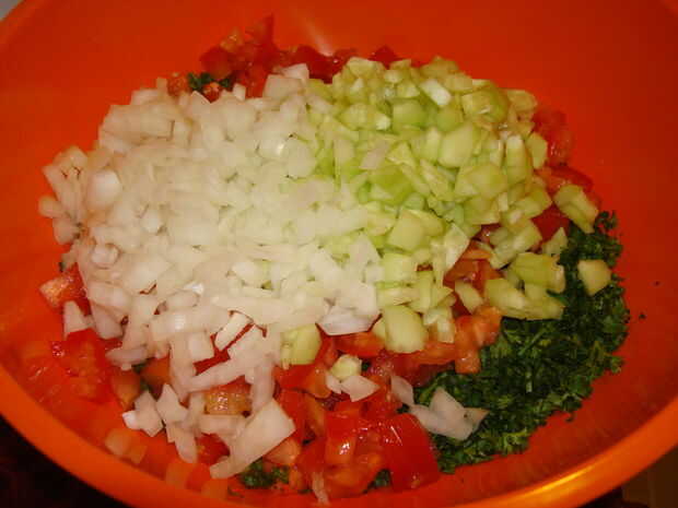 Combinar todos los vegetales en un tazón y mezcle bien.
