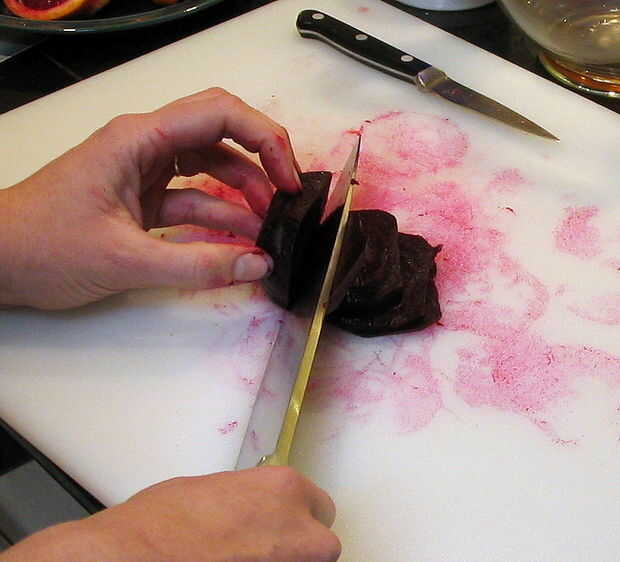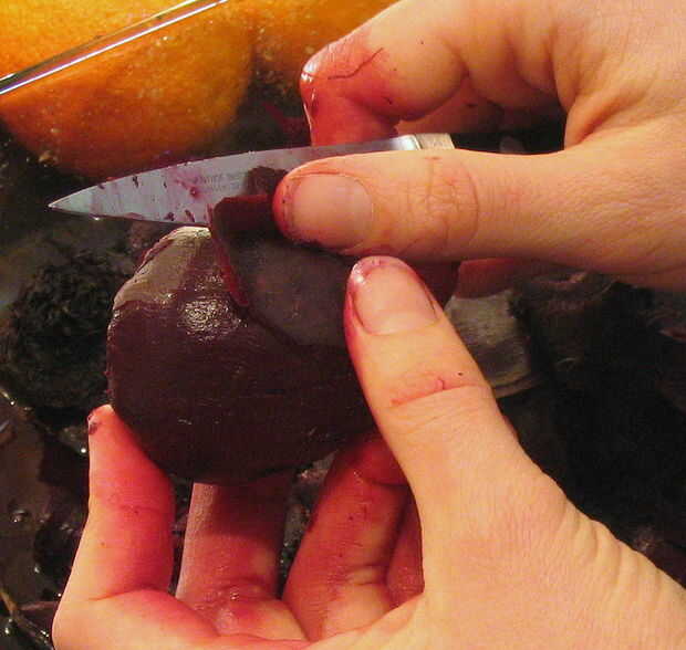 Después de asar y de enfriamiento, las pieles de la remolacha deben despegarse fácilmente.
