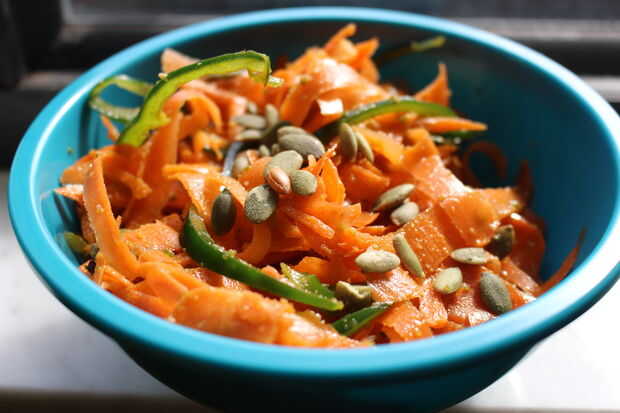 Ensalada de zanahoria fresco, sabroso, sabroso. No pasas de aquí!Paso 1: Ensalada de zanahoria salado1 libra de zanahorias peladas2 cucharaditas de mostaza de Dijon1 cucharada jugo de limón, de un limón recién exprimido1-1/2 cucharadas de aceite vege