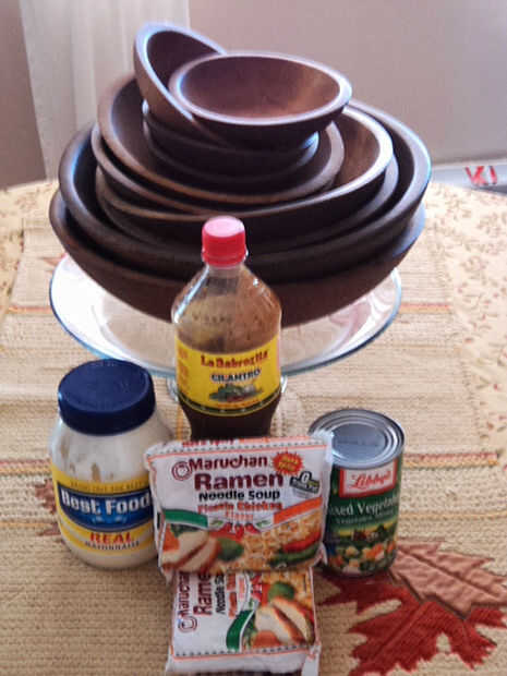 Ramen superior 2, lata de verduras mixtas, mayo y salsa