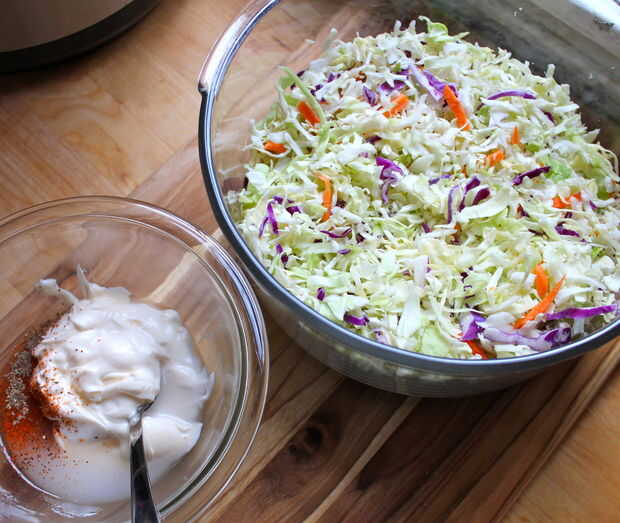 Tenga en cuenta que la sal se tire liquida fuera del Col/zanahoria/cebolla/etc, por lo que se convertirá en un poco más que moquea con el tiempo. Quería mantener más cremoso, así que traté de limitar el líquido que salió en frente. : D