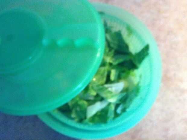 Couper la salade, ensuit laver dedans de l ' Eau froid. Une fois terminer faire sécher.