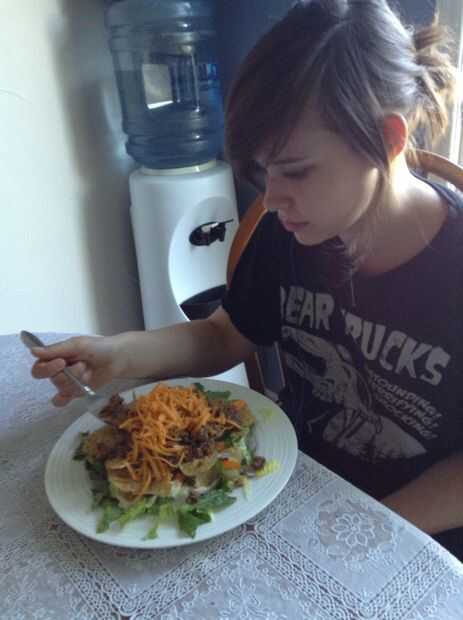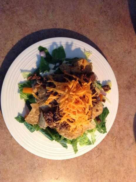 primero tuvimos ensalada taco durante una cena después de una exposición de los niños estaban en, los niños les encantó y me dieron la receta. Durante los años he adaptado y cambiado la receta para adaptarse a nuestras necesidades, pero todavía manti