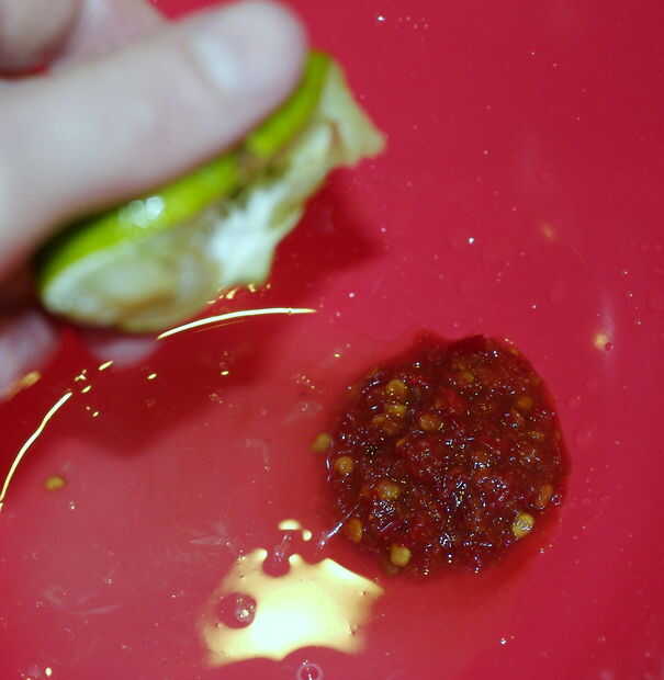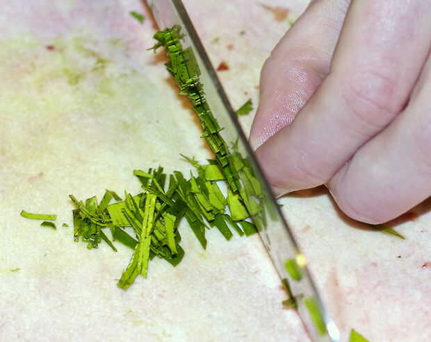 hoja de Lima 1 kaffir, finamente picada (la ralladura de los limones hace un buen sustituto)