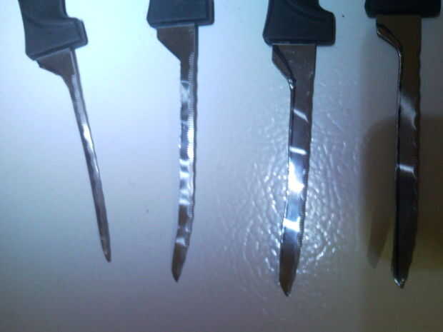 Se puede ver, más o menos, más amplia a la más estrecha. Necesita los más amplios para cortes más grandes y las más angostas para los cortes más finos. Hacer tanto, no te arrepentirás. No ganan los premios de belleza, sino que sus calabazas! Ahora vaya a ganar algunos!
