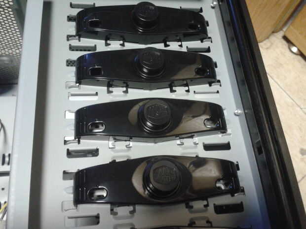 para el caso de la imagen, instalar unidades de disco todo lo que tienes que hacer es insertarlo desde la parte delantera y presione el botón correcto que inserta los "tornillos" que normalmente mantener en su lugar.