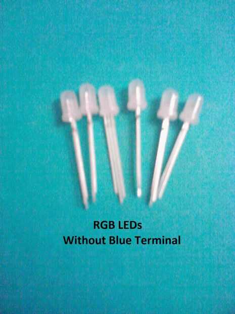Antes de usar los LEDs RGB, tomar 6 LEDs RGB y comprobar con un multímetro para verificar su calidad sea buena o mala. También cortar la terminal azul de cada RGB.