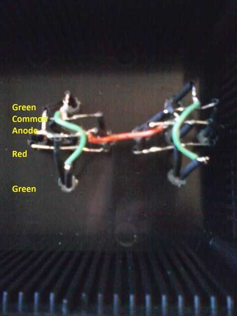 Ahora, interconectar los terminales verdes falta de fondo LED y cable verde para estas conexiones si quieren.