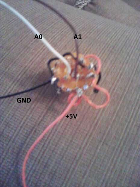 Conecte el conductor blanco y marrón cables a los polos de su conmutador conectando a A0 y A1 respectivamente mientras que el negro y naranja cables deben conectarse a GND y + 5V respectivamente.