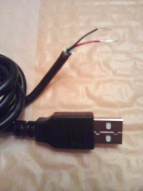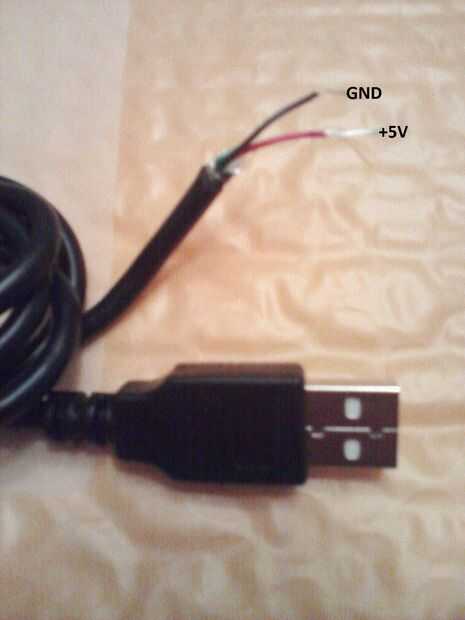 Tomar el CABLE, USB 2.0, A/A, 6 pies, negro, hombre USB-A hombre a USB-A y cortó uno de sus extremos por lo que puede solo dejar los cables rojo y negro que son + 5V y GND respectivamente durante la eliminación de los otros dos cables.